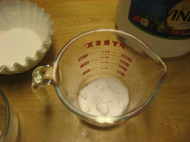Agregue muy lentamente el vinagre. Demasiado y el contenedor se desbordará con espuma. Añadir un poco, esperar a que la formación de espuma para desplomarse, añadir un poco más.