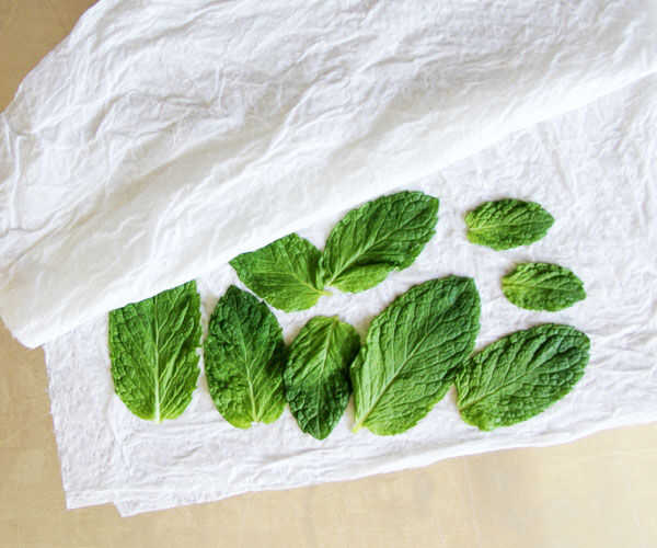 a continuación, enjuague sus tallos de menta y cebollas verdes. Tire de las capas externas de la cebolla apagado, dejando sólo los tallos pequeños, frescos y super verdes. Los saque.  Ahora quite 8-10 hojas de menta más pequeños y ponga la menta y la cebolla entre toalla de papel húmeda para mantenerlas apariencia fresca hasta asamblea de flor.