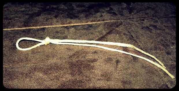 a continuación un nudo con un lazo en el pedazo de guita (o 2 piezas anudadas juntos).