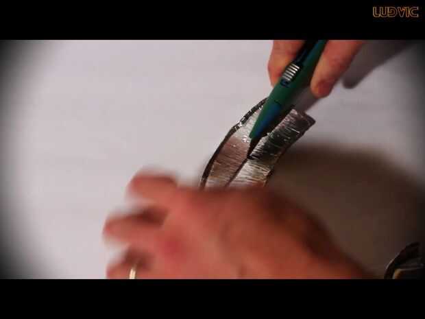Cortar por la mitad y perfeccionar el borde para hacer una sola pieza como la foto.