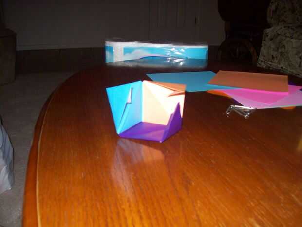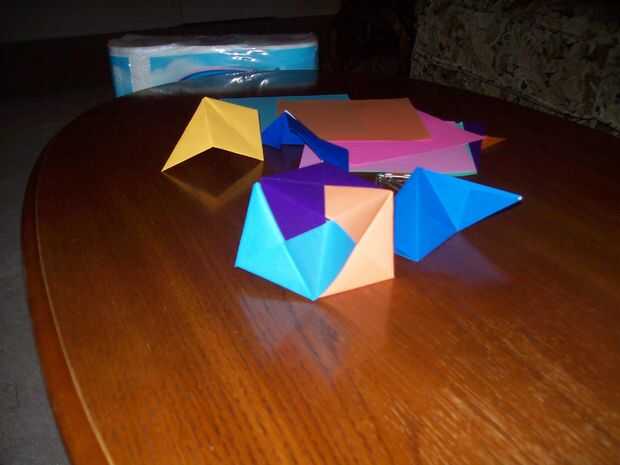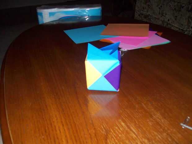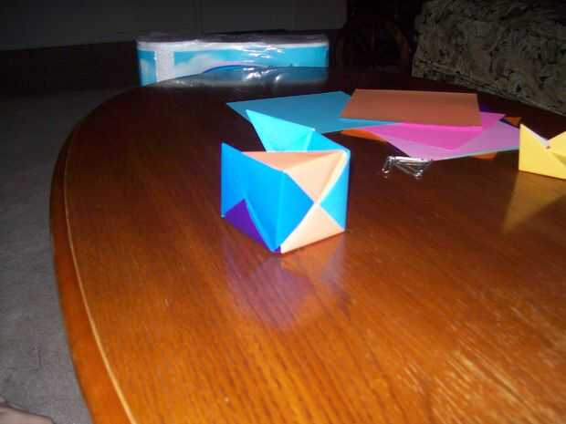 Iniciar fuera de la misma manera que lo haría un adorno 3 piezas, pero no conecte las aletas en la parte posterior. Añadir otra unidad a cada aleta y meter las solapas en los bolsillos correctos como antes. Deben explicar las imágenes. El producto final debe ser un cubo.