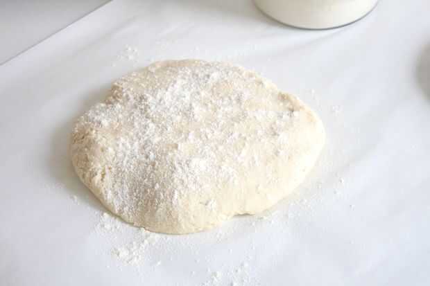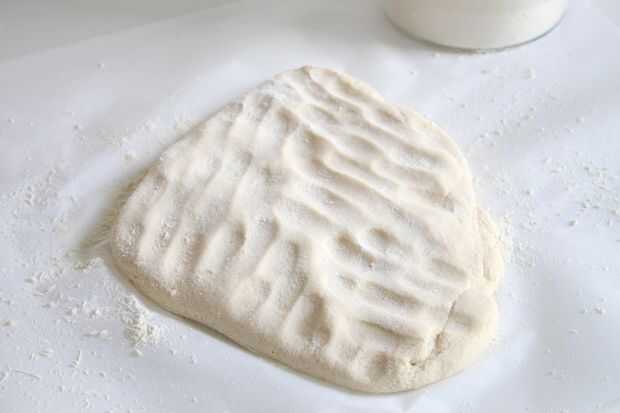 Ahora querrá volver a enharinar la superficie de trabajo ligeramente y plop la masa en él. Espolvoree un poco más de harina encima de la masa y empezar a amasar. Cuando se pone pegajosa, añadir más harina. Seguir amasando y añadiendo más harina (si la necesita) hasta que es agradable y suave y sólo ligeramente pegajosa. Minas amasa durante unos cinco minutos.