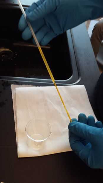 Sacar el tubo de vidrio dentro del tubo de plastice, contiene el oxalato de difenilo.