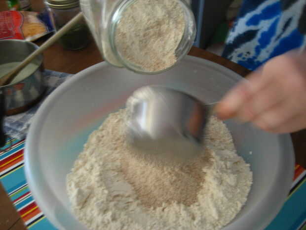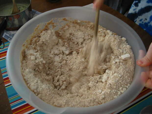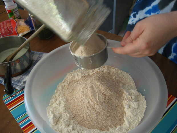 Poner las tazas 4,5 (9 tazas; trigo medio regular, medio entero; como se muestra) de Bisquik en un tazón grande.