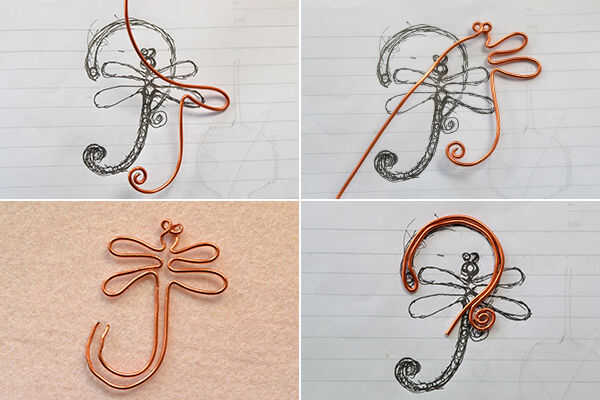 1, dibujar el contorno de la libélula de alambre y gire entonces el aluminio del alambre libélula según el cuadro;