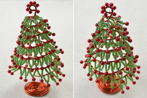 5, Repetir proceso 4 para envolver el árbol de alambre hasta que se llena de hojas de cuentas; Si encuentras el alambre de cobre no es suficiente, usted puede cortar otra cobre alambre y continuar envolver; 6, envolver el alambre de cobre redundante alrededor del alambre de aluminio; Ahora, se hace ornamet de árbol de Navidad de alambre.