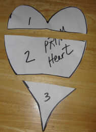 Las líneas de corte. Ahora tienes 3 piezas del patrón del corazón. Marcar cada pieza como hice yo.