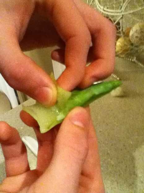 ¡ Hola!Hace días hice una bebida de Aloe Vera.Es muy sencillo y lo puedes hacer en casa.Paso 1: Se necesita AzúcarAguaAloe VeraCuchilloBotePaso 2: Pelar la piel Pelar la piel del aloe vera.Tenga cuidado de las manos.Es realmente resbaladizo, fangoso
