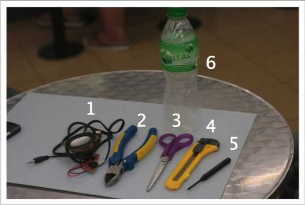 6. dos (2) botellas de PET iguales con un diámetro de 2,5 pulgadas en su parte interna más ancha en las mitades superior