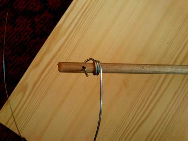 2) puesto en el taladro. Cortar un trozo de alambre y coloque el extremo del alambre a través del orificio y Envuélvala alrededor de la palanca.