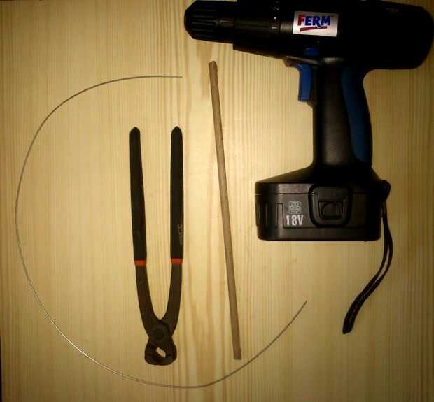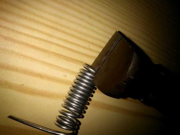 3) con sus guantes, cuidadosamente empezar a girar la varilla en el taladro. Esto hará una producción de resortes de metal. Se aconseja para hacer algún tipo de marco que llevará a cabo la barra! O usted puede hacer en la mano como lo hice.