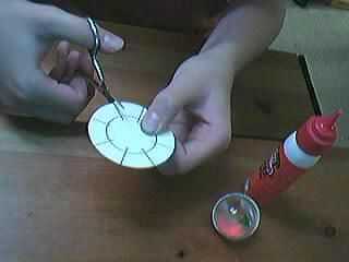 Cortar dos de las líneas que van dirección al centro del círculo. Corte dos que están al lado de uno.
