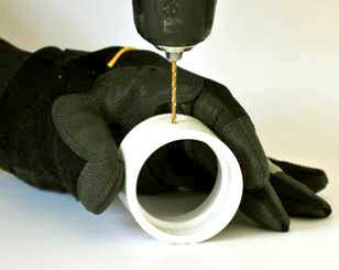 Perfore un agujero (en medio de un lado) 3" o más 40 de tubo de PVC o guarnición, utilizando un taladro y un 3/32" bits.
