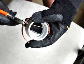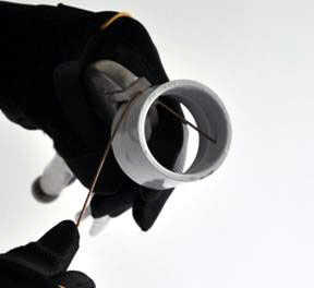 5. Continúe girando el cable alrededor de la PVC, manteniendo una presión constante con la mano enguantada en el paquete creciente.