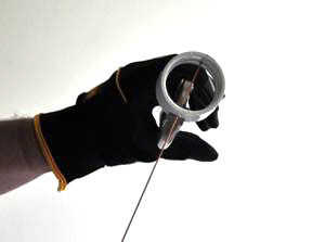2. Empuje el extremo de un palo de 3/32" RG45 gas soldadura varilla completamente en el agujero en el PVC.