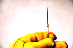 2. doblar el alambre alrededor de los alicates de punta de aguja como se muestra.