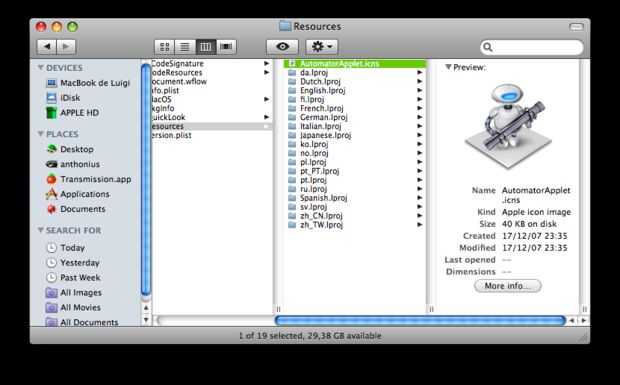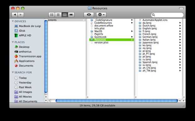 4. eliminar AutomatorApplet.icns mantenga esta ventana abierta