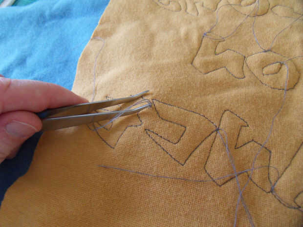 Tirar de los hilos en la parte posterior. Atar nudos.