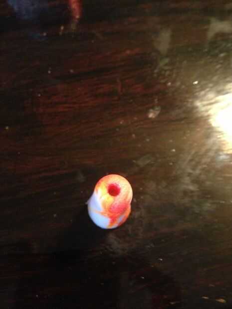 Agujero de quemadura de herramienta caliente tome en el centro del tapón con la herramienta de corte del calor. Woller por medio de sus tapones con herramienta de corte del calor, por lo que el tapón se forma alrededor de los EarPods Mark y corte orificios en el lado de tapones para los oídos con herramienta de corte del calor