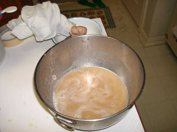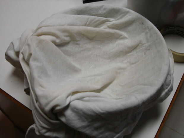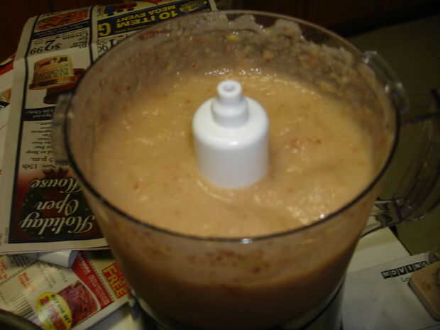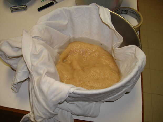 después de que las manzanas se convierten en salsa de manzana, volcarlos hacia fuera en su camiseta extra