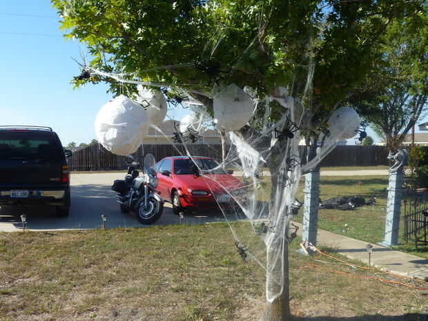 para Halloween que necesitaba un montón de arañas! Pero el precio para comprarlos fue camino a alto. Se planificó en convertir uno de los árboles en nuestro jardín en una casa de araña enorme. Necesitábamos arañas de diferentes tamaños y muchos de ellos para hacer este look adecuado. Se me ocurrió esta idea para hacer realistas (de noche) busca arañas que eran presupuesto amigable. Diviértete haciendo estos.