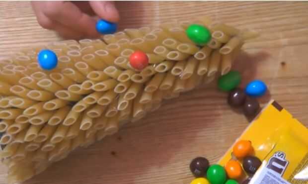 Cómo hacer árbol de Navidad Pasta + M & Ms (2 / 3 paso)