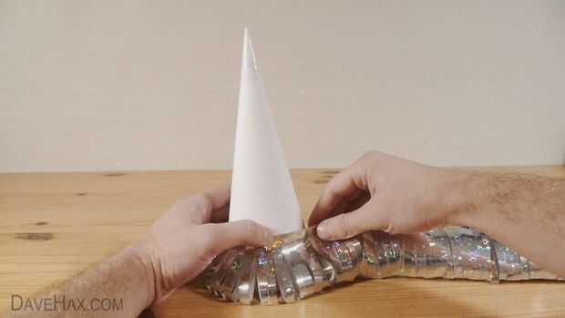 Envuelva el papel alrededor del cono y cinta en. Hacer esto en capas hasta el cono.