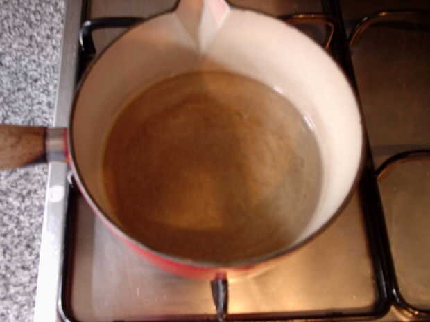 Después de que el agua esté hirviendo, retirar del fuego añadir el aceite y mezclar juntos.
