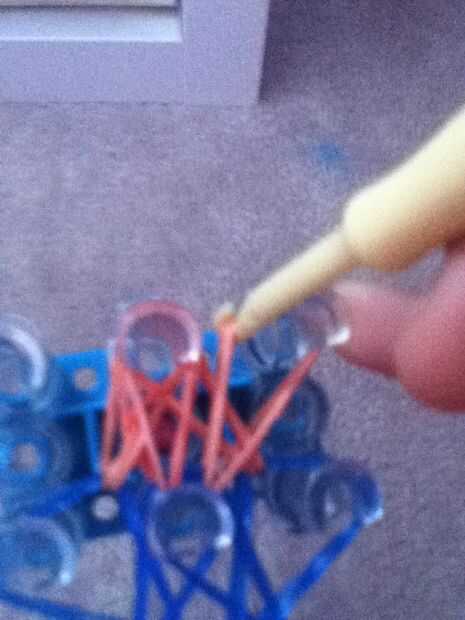 Aquí es cómo hacer el arco iris telar bebida sola.Paso 1: Obtener los elementos necesita cualquier color gomas C clip, gancho, telar.Paso 2: colocación de bandas de caucho Hacia fuera sus gomas en cada conjunto de clavijas.Paso 3: Tiempo de agregar t