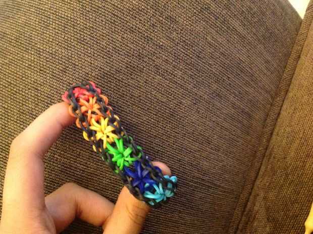 para hacer el de las pulseras de Starburst telar de arco iris que necesita:-Telar del arco iris 1-C 1 clip-Múltiples bandas de goma de diferentes coloresPaso 1: Colocación de las bandas Empezar con el telar de arco iris en la dirección donde la flech