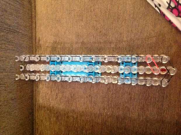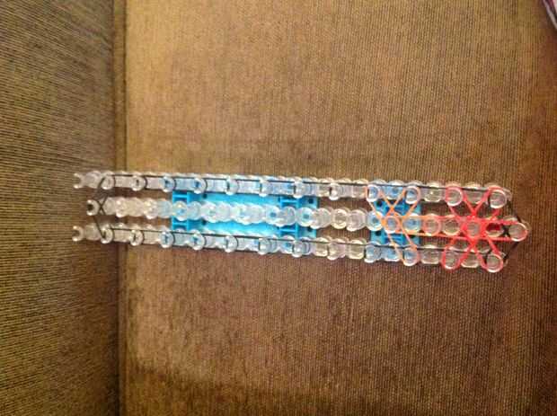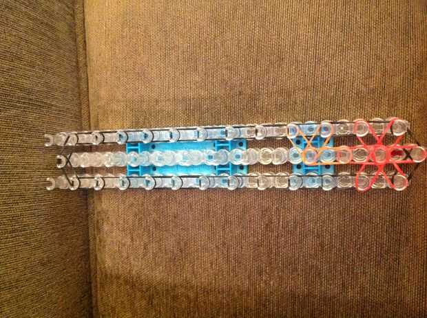para hacer el de las pulseras de Starburst telar de arco iris que necesita:-Telar del arco iris 1-C 1 clip-Múltiples bandas de goma de diferentes coloresPaso 1: Colocación de las bandas Empezar con el telar de arco iris en la dirección donde la flech