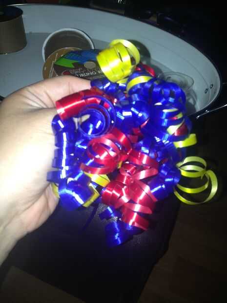 preparación-Ssiccors-Cinta-Suspensiones-PlyersPaso 1: Usar plyers para mezclar la suspensión en forma redonda.Paso 2: Corte de cinta en piezas cortas de 20cm.Hacer arcos de esas cintas y lazo en el gancho de acero.Se puede hacer un color laurel o mez