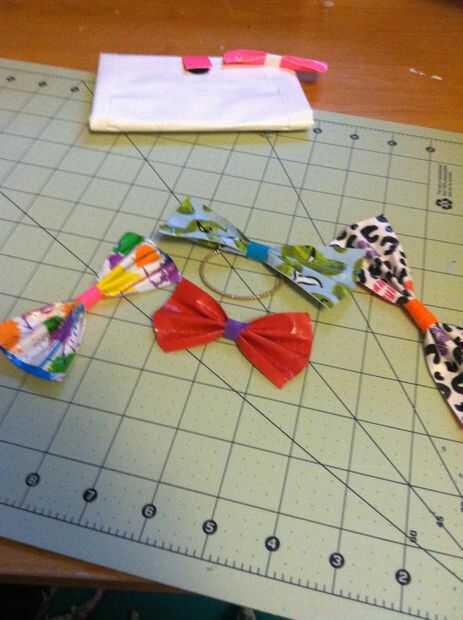 ¡¡¡Que te diviertas!!!Paso 1: corte...Corte un 9,5 en la tira de la cinta. Pliegan por lo que es una tira de 4,5 en cara, doble de cinta del conducto.Paso 2: pellizcos... Recoger la cinta en el medio.Paso 3: grabar...Use un pequeño trozo de cinta y c