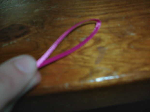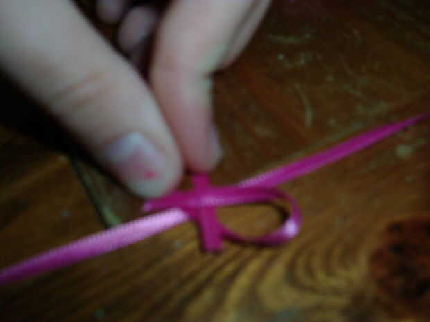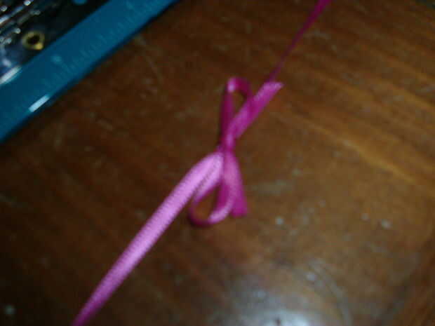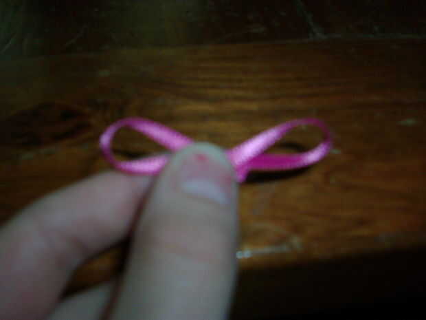 A continuación, corte un pedazo largo de cinta y atarla alrededor de la mitad de la pieza no-absolutamente-a-arco de la cinta. Una vez que lazo es un lazo de pelo agradable!