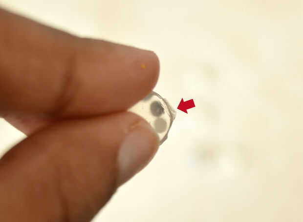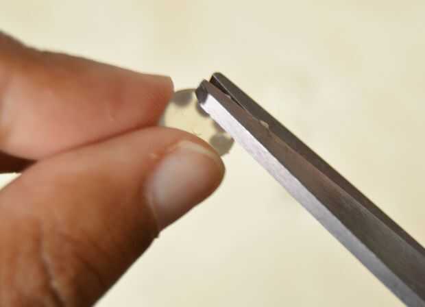 Si usted tiene un pedazo irregular de cordones de pegamento en el borde, utilice una tijera normal y recortar los bordes como se muestra. Fácil!!!!!!