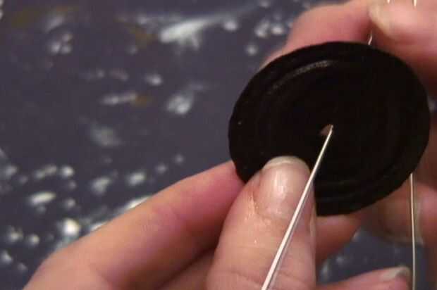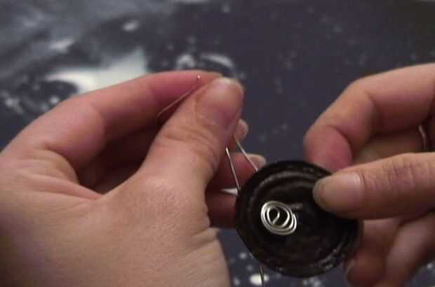 Pase el extremo más corto a través de una de sus tapas de botellas y tuerza el extremo del alambre para arriba en la espiral. Repita en el otro extremo del alambre, y termine con el primera pendiente!