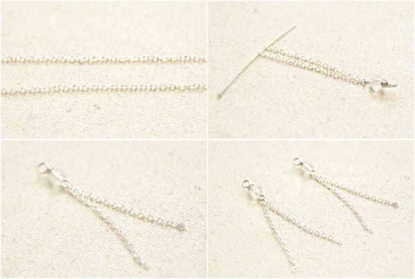 2 abrir el simple lazo en eyepin y el enlace del centro del gancho de cadena (puede utilizar un pin para ayudar a encontrar el centro de la cadena). Repetir el mismo proceso con la otra pieza de pendiente.
