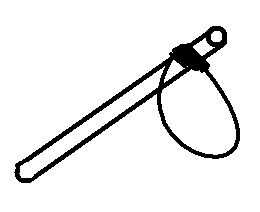 poner la goma ancha a través de la pluma de punta a punta, luego la goma fina alrededor de la una amplia cerca de una punta de la pluma de la bobina.