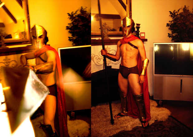 Bueno, así este haloween pasado estaba loco de la película 300 y decidió que iba a ser un espartano, por lo que he construido este gran armadura la de cajas de cartón tenía por ahí.