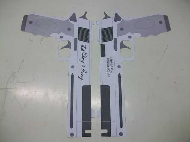 No puedo insisto esta bastante: imagen de referencia y planos son esenciales. En este caso hice una de las dos pistolas utilizada por Dante en el diablo puede llorar serie, en este caso, ébano, una negra, que tiene en la mano derecha.