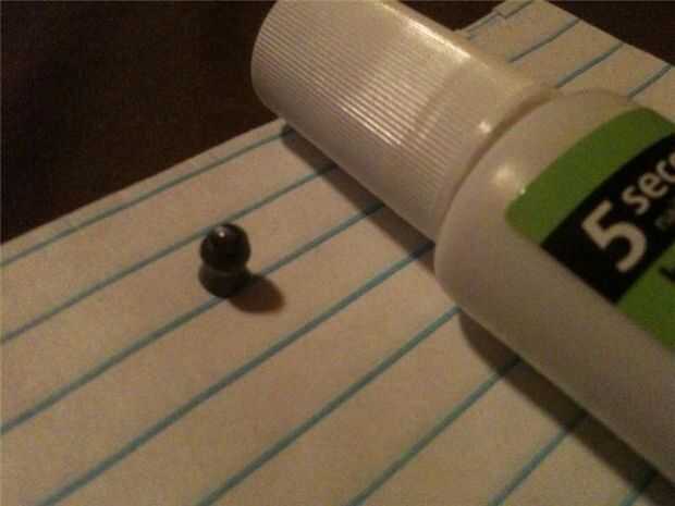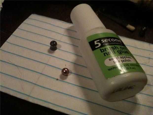 Tomar el pellet y levantarse en el extremo. Luego poner una gota de pegamento en la punta de la pelotilla, seguida de la BB.