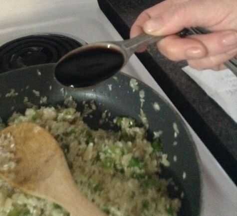 3. Agregue 2 cucharadas de salsa de soja y continuar revolviendo durante 30 segundos.