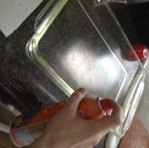1. Rocíe la bandeja de cristal con PAM o cualquier otro aceite en aerosol.