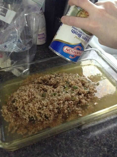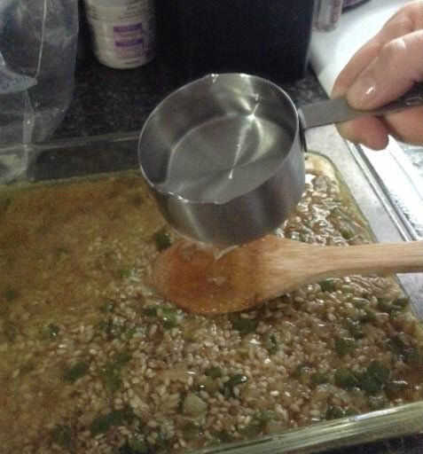 Paso 6: Añadir el arroz, el caldo y el agua en vidrio pan.