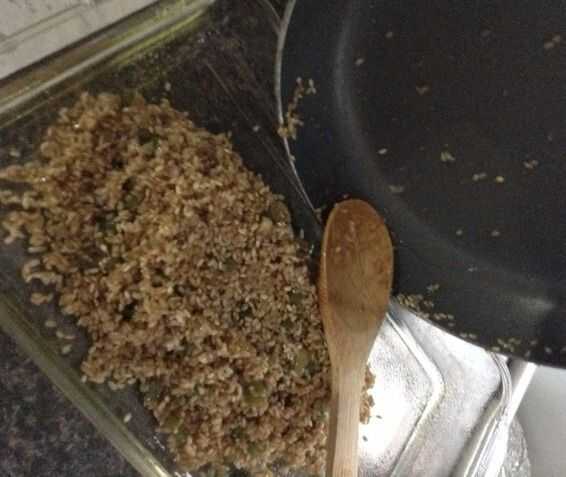 2. agregar el arroz mixure de sartén en recipiente de vidrio.