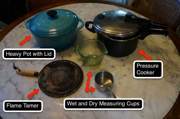 1. olla a presión (ideal) u olla grande con tapa. Un pesado hierro fundido o esmalte pote con tapa es el mejor pero funciona cualquier olla con tapa.