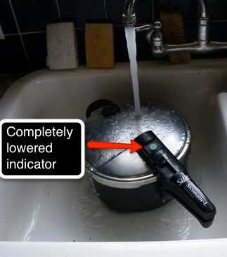 Si utiliza una olla a presión, espere hasta que la presión desciende completamente antes de abrir. Esto será indicado por un indicador de presión totalmente bajado y sonidos de silbido no más.