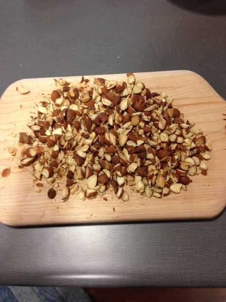 2. Añadir almendras picaditas a la sartén caliente que se utilizó originalmente para tostar el arroz