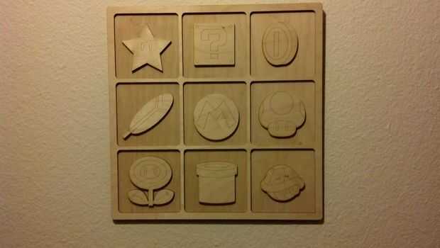 El proceso en una cáscara de la tuerca es a elaborar su diseño en un programa de gráficos, cortar usando un cortador láser, unir las piezas y coloque un gancho de diente de sierra en la parte posterior. Entonces usted tiene un don impresionante de encargo para dar a conocer. Voy a caminar a través del proceso que he seguido para el collage de Mario que hice como regalo de Navidad tardío para un amigo. Además también puedes pintar los pedazos individuales, mancha de ellos, marco toda la pieza o colgarlo como es.