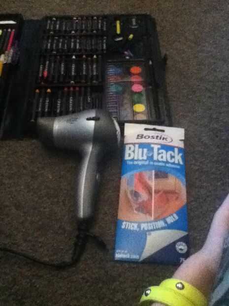 los ingredientes y de fusión arte Crayola!Paso 1: materiales * Creyones de Crayola (dependiendo de cuánto lienzo su uso, dice cuántas cajas de lápices de colores).* Jadeo lona (un 16 x 20 tiene solamente una caja de lápices de colores).* Secador de m